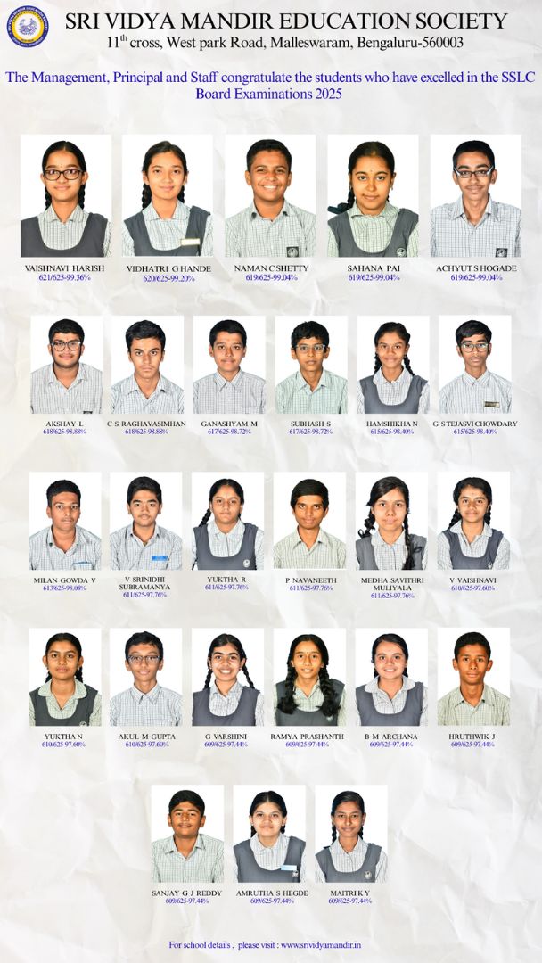 Sri Vidya Mandir Education Society is the dream project for which our Founder Late N. Leelavathi laid the foundation stone fifty years ago. A great visionary, an exemplary educationist and a born leader, she meticulously built this temple of learning, brick by brick and cemented it with a deep value system, great education and uncompromised discipline. Under her stellar leadership, the institution has seen fifty glorious years and is one of the most prominent schools of Bengaluru. With a strength of over two thousand students, our strong student community stands as a testimony to the goodwill that our institution enjoys in the city.